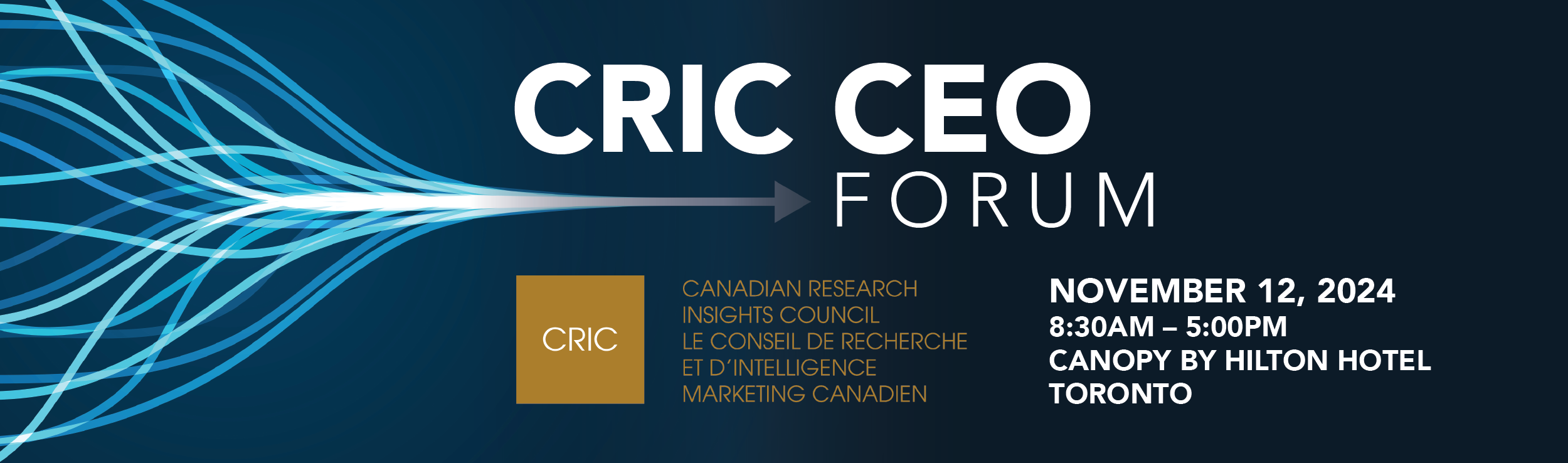 The CRIC CEO Forum will take place from at the Canopy by Hilton Toronto Yorkville located at 387 Bloor Street East, Toronto, Ontario. Breakfast will be available at 8am and the CEO Forum will begin at 8:30am and wrap by 4:30pm