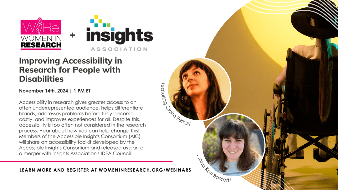 Accessibility in research gives greater access to an often underrepresented audience, helps differentiate brands, addresses problems before they become costly, and improves experiences for all. Despite this, accessibility is too often not considered in the research process. Hear about how you can help change this! Members of the Accessible Insights Consortium (AIC) will share an accessibility toolkit developed by the Accessible Insights Consortium and released as part of a merger with Insights Association’s IDEA Council.